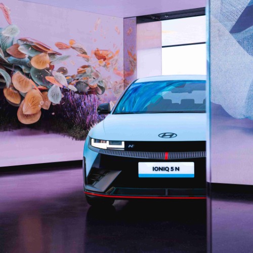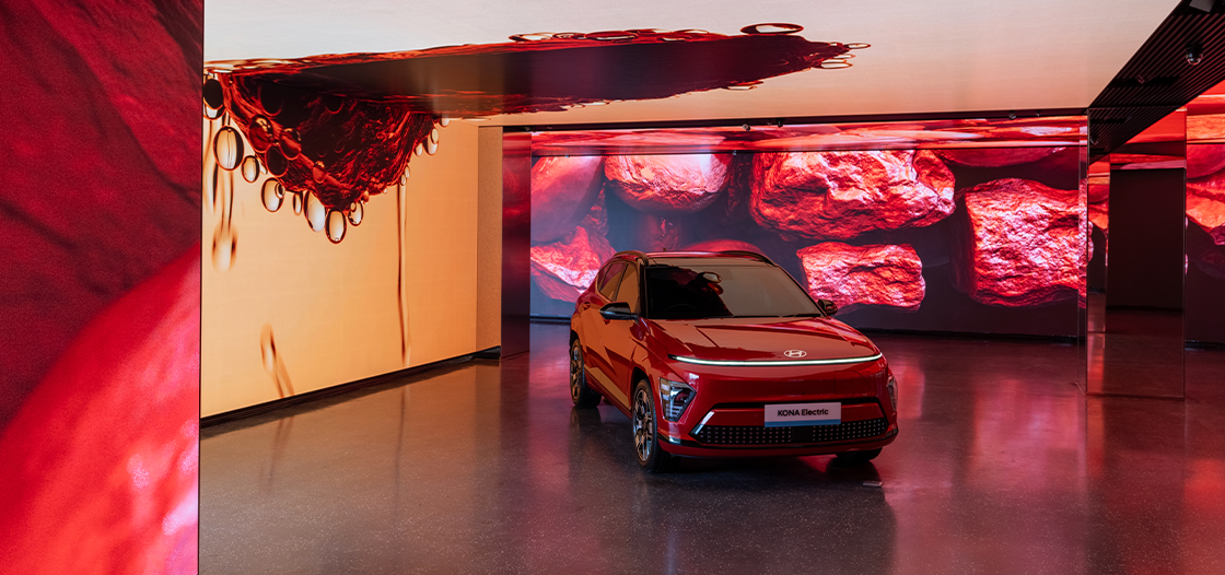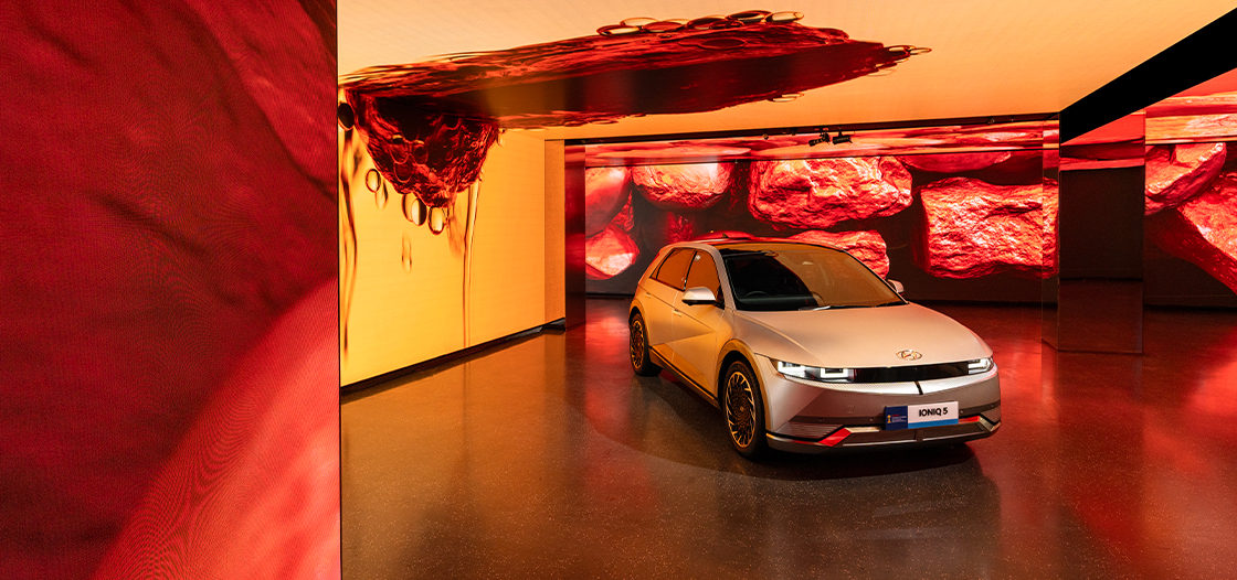 Hyundai Motorstudio surrounded by LED screens consist of media art that show you about life and imagination, exploring human movement, figurative forms, and emerging technology to push the boundaries of human digital art and creative experience.