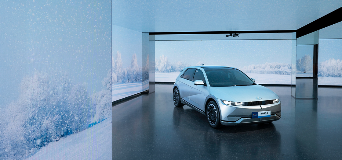 Hyundai Motorstudio dikelilingi oleh layar LED berisi media seni yang akan menunjukkan pada Anda tentang imajinasi kehidupan, eksplorasi pergerakan manusia, bentuk-bentuk figuratif, dan teknologi terkini untuk melampaui batas-batas seni digital serta mendorong pengalaman kreatif manusia.
